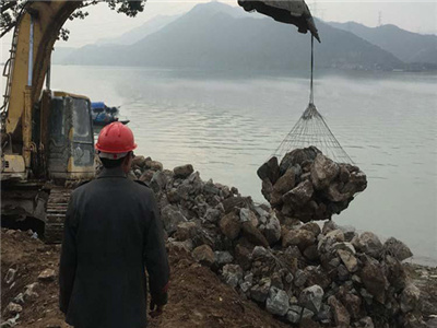 合金網兜又稱石籠網兜。石籠網袋是由雙絞合六角形金屬網編織而成的圓柱形袋狀物。在施工過程中,石籠網袋內填充石料,構成結構牢固,透水性的建筑材料,用于河道防護等緊急預備工程。